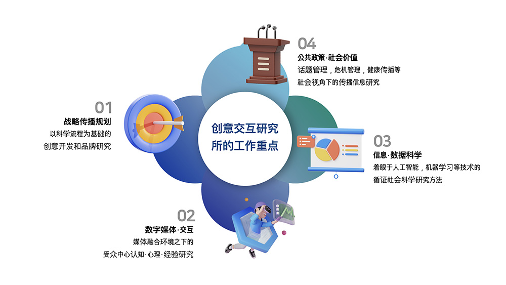 创意交互研究所以人工智能和机器学习等信息学和数据科学领域出现的最新技术为基础,采用社会科学方法开展研究。致力于提供社会科学方面的实质性证据和见解,以及解决社会科学问题的新视角。